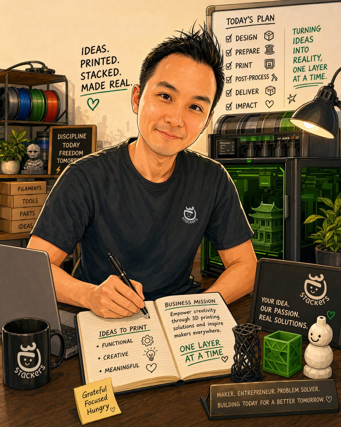 I’m Zhangkai, and I started 3Dstackers because I was tired of seeing 3D prints that looked great on a screen but failed the moment they met the real world, especially in the Singapore heat.